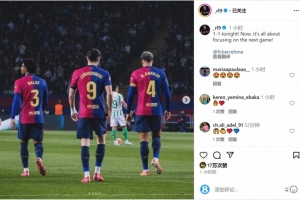 体育资讯4月6日讯 西甲第30轮比赛,莱万踢满全场,巴萨主场1-1战平贝蒂斯。